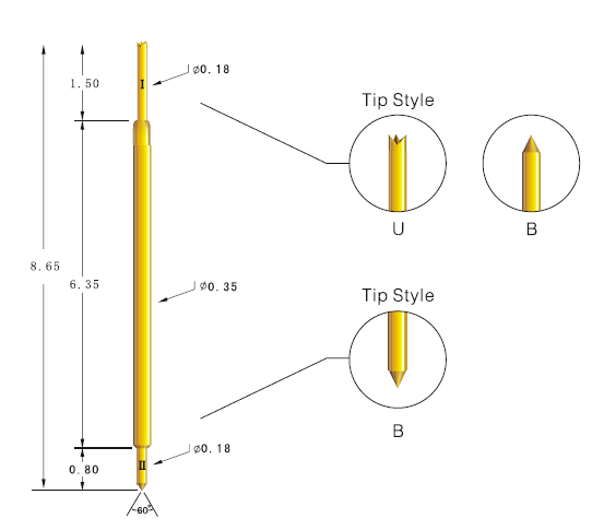 Semi-conductor test probe SCP035(63)-BU-86-G is can be applied to mobile phones, computers, etc. In addition to this model, we also manufacture a variety of test probes of small diameters. With over 30 years’ manufacturing experience, our factory is able to supply various models of high quality at competitive prices. If you are interested, please feel free to contact me any time or browse our website (www.centalic.com) for other models with detailed specifications. Thanks a lot!