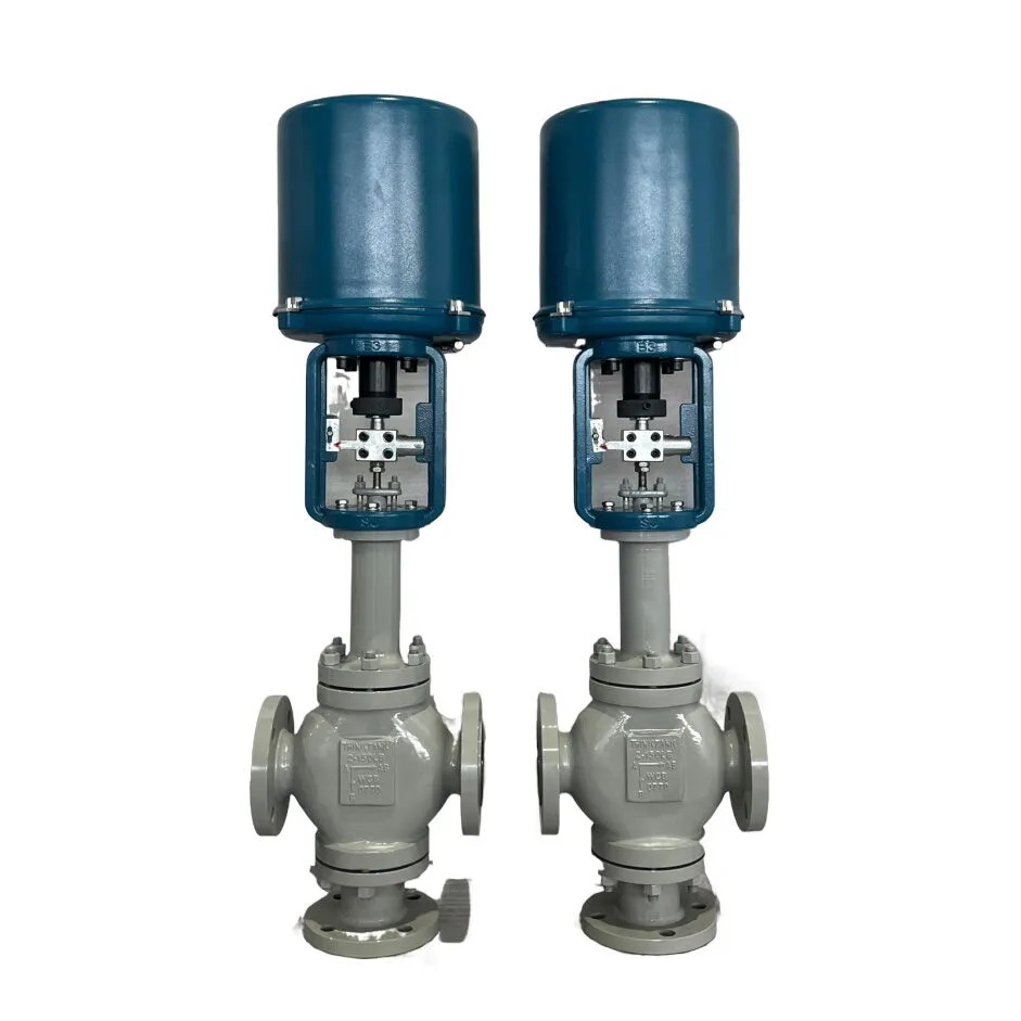 The Three-Way Control Valve Plant is equipped with an electric operation system and offers sizes ranging from 3/4 to 14 inches, with a pressure class of 150-600 LB. Constructed from cast carbon steel, these valves provide options for flanged or welded ends and utilize a stainless steel gasket for dependable sealing.