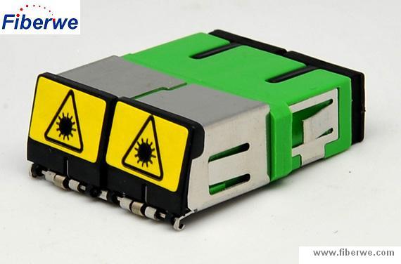 SC/APC Duplex Adapter, with external shutter, flangeless, Green housing, ABS/PBT housing, zirconia ceramic sleeve