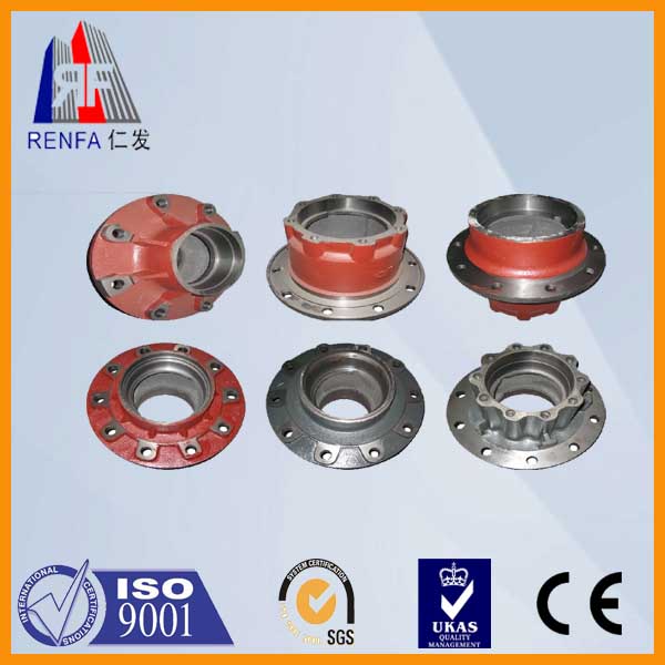 2.Generally, the material of truck wheel hub is nodular cast iron(ductile iron), the Tensile strength is 400, Elongation is 17. And the chemicals performance: C:3.0~4.0%, Si:1.8~3.2%, Mn:0.7~0.9%, P:0.1~0.2%, S:0.1~0.12%.