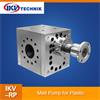 xtrusion Line Synchronization Made Easy. With an IKV gear pump between your extruder and die you can directly dial in gauge control, eliminating extruder surge and screw beat at the die. Extruder screws efficiently melt, mix and convey polymer, but are not as efficient at providing a consistent pressure and volume to the die. A melt pump, while not a mixing or melting device, is extremely efficient at building pressure and metering the polymer output.