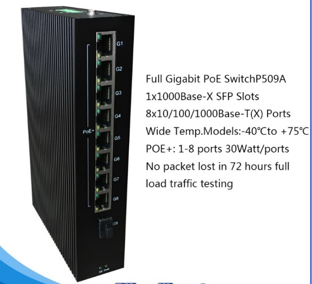 P509A Full Gigabit Unmanaged PoE Industrial Ethernet Switches are equipped with 9 Gigabit Ethernet ports, and up to 8 PoE ports, making them ideal for applications that demand high bandwidth.