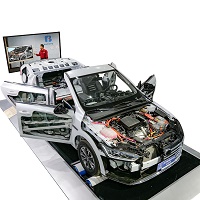 The training device can display the internal circuit and power supply system of the original electric vehicle on the basis of slicing the original electric vehicle in normal operation. Equipped with a training bench, including a fault setting module and a measurement panel, the original vehicle circuit can be easily restored to ensure the same function as the original electric vehicle; the educational equipment can also be connected to the training bench for fault setting experiments.