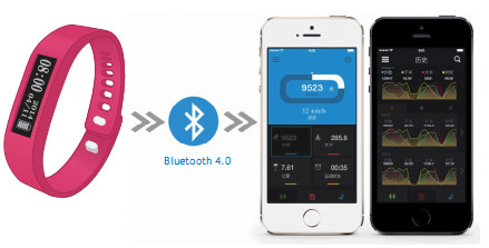 This smart wristband upload your activities data via bluetooth 4.0 and sync in the cloud.