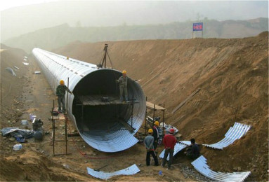 The corrugated culvert has thin tube section, light weight, convenient transportation and storage, simple construction process, convenient on-site installation, solving the structural damage of bridges and pipe culverts in cold regions in the north, quick assembly and short construction period. In order to prevent corrosion of the corrugated culvert, the inner and outer surfaces of the bellows section and the fastening bolts are hot-dip galvanized. The thickness of the galvanized layer is ≥63μm, and the average galvanized layer thickness is 84μm.