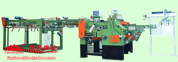 Core veneer jointer(composor) machine is suitable for core veneer joining together in plywood production line and it can process different sizes of core veneer (poplar, eucalyptus wood, etc.) with high strength thread and hot melt adhesive connection as one whole body, then facilitate the subsequent stages of production of plywood line .The whole process is automatic and only one operator is enough.