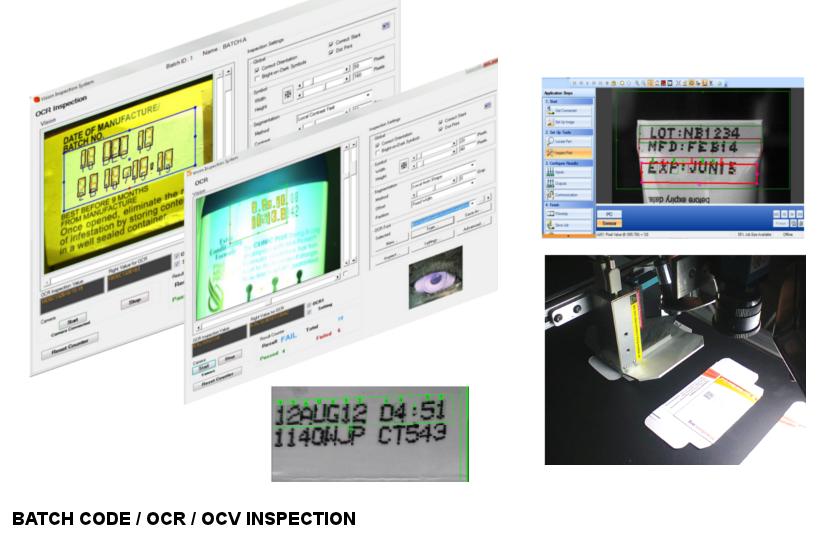 Sundaram Technologies provide complete system to inspect batch codes by OCR / OCV methods. Our software can feed data to printer for printing [variable / random - optional] and same data vision system will verify. If it is rejected our system will generate rejection signal, visual alarm, voice alarm as required. This is high speed system and can read CIJ - ink jet printed text also.
