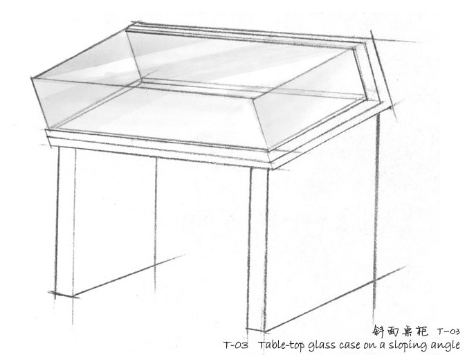 5-sided all-glass table-top display case with sloping glass hood set at an angle. Open plan display plinth for perfect all-round viewing visibility. Comes with built-in silica gel drawer compartment concealed below table top. Ideal for libraries and archives for historic documents, flat object displays and smaller exhibits that require close-up viewing. Cases offer ease of access with a high level of security and environmental control.