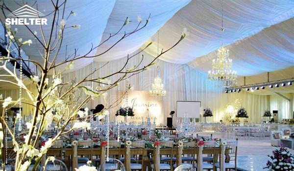 Shelter tent offers different sizes and shapes outdoor wedding tents for banquet, ceremony, reception, buffet etc. The size of this tents is 20 x 40m (65.6′ x 131.2′) for 500 to 800 seaters. There is no center poles inside the tent so you can layout with tables and chairs, stages everything you want. The capacity is depend on the arrangement of seater, stage, dancing floor, decoration and more. Please click event planner to find out more solution.