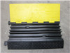 The 2 channel heavy-duty rubber Cable Protector keeps up to 2 cables, hoses, or wires protected from traffic. The cable protector has (2) 30 mm x 30 mm channels to accommodate various size hoses and cables. The protector is made from a commercial grade rubber base with a PVC flap, allowing it to support up to 20T per Sq. M. Center sections and optional TG-CP2T turn sections (3 turn sections are required to make a 90° Turn) are joined together with male and female connectors on either side making it ideal for curving around warehouse racking, large poles, or other objects...The surface has a diamond pattern tread for additional traction. The yellow flip-up lid is easily visible, and has molded in safety warnings.