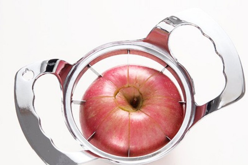 Title: Zinc alloy apple cutting, fruit knife, apple cutting device, segmented, fruit cutting device, core-removing device. Product description: sharp and even, sliced, quick core-removing, sliced apple