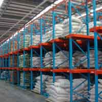 3. trucks can drive right into the center of the block between any uprightss on the front face to pick up pallets