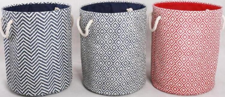 Paper baskets are folded in carton. There is no creases on the products surface, because of the material special. And each carton contains them more quantity than the fabric laundry basket.