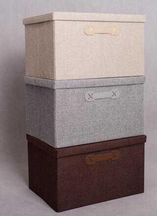 Foldable Storage Basket with Lid, Polyester Storage Box with linen design