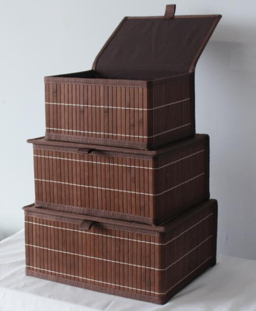 Bamboo box with Lid 3pcs/set, Baboo storage box with fabric lining, Eco-Friendly
