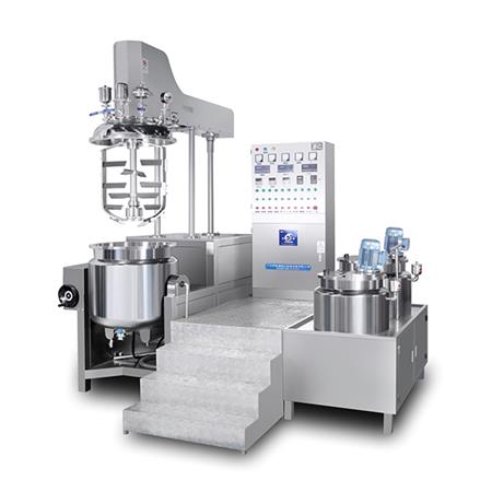 RHJ-A Vacuum emulsifying mixer (Bottom homogenizer type), this type machine the homogenizer is fixed in the machine bottom, increase the power of the motor, more thoroughly and more powerful, machine lid is can hydraulic lifting.