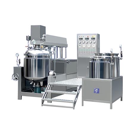 RHJ-A Vacuum emulsifying mixer (Bottom homogenizer type), this type machine the homogenizer is fixed in the machine bottom, increase the power of the motor, more thoroughly and more powerful, machine lid can be hydraulic lifting.