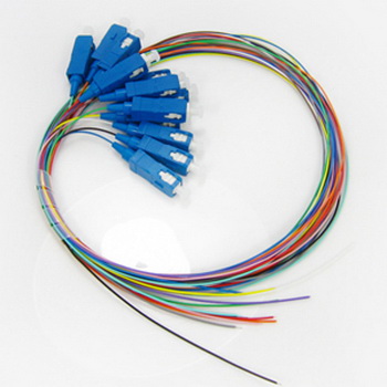 The SC/UPC fiber optic 12 color coded pigtails are fully compliant with Telcordia, ANSI, IEC, TIA/EIA, NTT and JIS specifications; with typical 0.9mm outer diameter cables, they are used in WANs, LANs, telecommunications and fiber optic test applications.