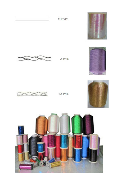 The A type is twisting at regular intervals with a single nylon, colored viscose rayon, polyester, acrylic fibers, or other type of yarns. This product is generally used for embroideries, knitwear, lace, mesh, accessories, etc.