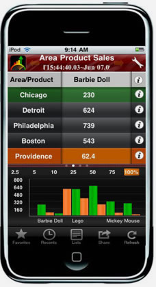 SmartGlance™ provides On-demand and Real-time access to continually changing corporate data, alarms, reports and KPIs (Key Performance Indicators) via mobile smart phones. In addition, SmartGlance also provides Mobile Business analysis tools on the mobile phone so that you can make smart decisions even when you are on the road.