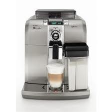 Saeco Syntia Cappuccino & Espresso Machine is a stylish one touch brewing machine capable of making espresso, cappuccino, americano and long coffees. It is very compact having a footprint of just 10” wide x 16 ½” deep and standing 12 ½” tall allowing it to set on the counter under most kitchen cabinets. It has intuitive color coded controls like a traffic light and an LCD screen status display keeping the user informed throughout the brewing cycle. It has a built-in ceramic burr coffee bean grinder that is adjustable for fine tuning the grind to the brew requirements and a removable milk carafe that sets in your refrigerator until you are ready to make a cappuccino, then just snaps into place for use.