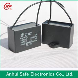 CBB61 capacitor takes heavy edge metalied Al/Zn film as electrodes and dialectric. It is imprenated with flame-redardant epoxy resin and canned cubic ABS or PBT plastic case with chracteristiccs of small size, reliable performance and long endurance.