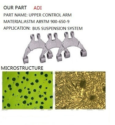 Austempered ductile iron casting; ADI casting; Material: ASTM A897M 900-650-9 ; Application: bus, truck, light commercial vehicle suspension system.