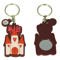 Mirror key chain with cute castle design is good quality, great design and favorable price, made of soft PVC. It can help you spot your keys and make them stand out. Its a special product for hot sale! Customized designs, logos and sizes are welcomed.