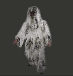 This Ghillie suit is made of synthetic fiber, free size, weighs appr 1.6kg, includes jacket, pants, hood, rifle wrap and storage/carry bag. It provides you with the ultimate concealment from your enemies or prey and has many uses such as hunting, recon, paintball, airsoft, photographing, military, law enforcement, Halloween, and more.