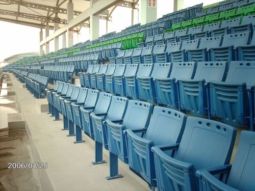 HSY-111 stadium seating is the ultimate choice for outdoor stadiums / arenas. P.E. blow molded seat and back shell inherited with UV stabilizer provides protection against Ultra Violet light. Die cast steel legs are anti-rust powder coated for longer life cycle. The ergonomics contour will provide excellent comfort feeling to the audience.