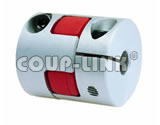 coupling assembled by pressing a polyurthane sleeve intl hubs on both sides;