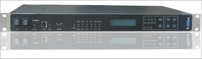 FEATURE: 8E1s and double optical interfaces available with ASL function. 10/100 BASE_T Ethernet, N×64Kb/s V.35, and V.24/RS232 on chassis. SNMP optional