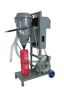 Model GFM16-1 extinguisher dry powder filler is a new product developed by our factory after absorbing the advantages of powder fillers at home and abroad. It can quickly suck dry powder into the cylinder and be directly filled in the container by vacuum fluidics, and it can also conduct sucking and filling simultaneously. It features small volume, easy movement, simple operation and lack of environmental pollution. Thus labor intensity is decreased and work environment is improved. It is especially suitable for the filling, production and maintenance of dry powder extinguisher and also suitable for filling various powder products. So it is an ideal equipment in the powder filling industry.