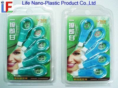 Teeth whitening scrubbers key part is the high density compressed melamine foam strip,as is known to all,melamine foam is no harm to human health and due to it contains millions of nano-holes,when the foam gets wet,it will creat unimagnatively strong absorbance of dirt.