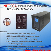 600W/12V pure sine wave UPS with charging and LCD monitor.