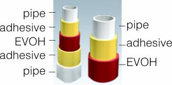PALCONN EVOH tube adopts five-layer(tube-AD-EVOH-AD-tube) & three –layer (tube-AD-EVOH) co-extrusion technology to extrude the PB, PEX and PE-RT oxygen barrier tubes of diameter range of 16-63mm and use special screw and dies for the oxygen barrier material. Oxygen barrier tube could prevent the metal in the tube from corrosion. Then could keep the germs from growth, making the water clearer.