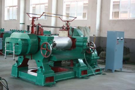 Rubber mixing mill machine for double roller machine, mainly open refining organic (1), (2) for casting for welding), frame, rollers, gears, lubrication device, heating, cooling device, roller is adjusting device, safety brake and motor, gear, etc. The roller adopts safe cold hard cast-iron, formed by the surface grinding smooth surface. Inside the hollow cylinder for use, can according to the requirement, the steam and cooling water are used to regulate the temperature of the rolls. Two rolls with different relative rotation speed, rubber roller into two slot by mechanical processing.