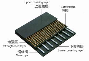 Applied for conveying materials that require high strength,longevity,less elonggation,long distance,good flexbility,good slot molding at the occasion of long distance,high load,and high strength in the field of coal mining,port,electricity,metallurgy,ect.