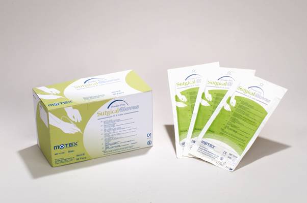 Powder-free, Gamma-sterile, Anatomic Shape, Disposable, Beaded Cuff, Size-embossed, Micro-textured, Chlorinated