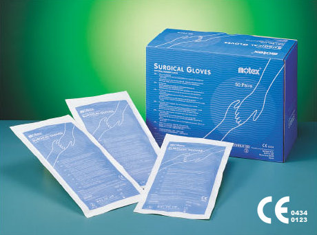 Powdered, Gamma-sterile, Anatomic Shape, Disposable, Beaded Cuff, Size-embossed, Micro-textured