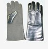 14""grey cowhide split leather welder glove, one piece aluminum fabric back, welted seam, full lining."