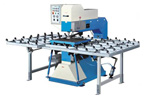 Pneumatic clamping of the glass sheet during the drilling operation of opposite drilling head. It is equipped with a glass supporting table.