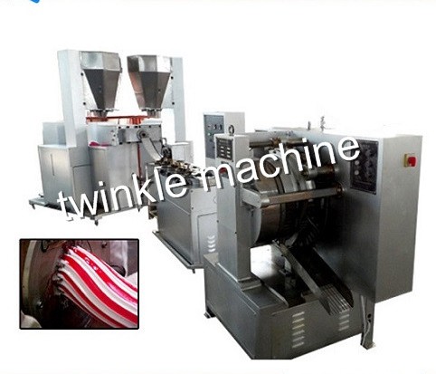 It is specially developed and produced for extruding double-color candy rope in producing colorful hard candy or lollipop candy after absorbing the candy extruding technology from abroad and European, which has already filled the gap of double color in producing the die-formed candy as well as replaced the traditional two color candy processed by manual methods.
