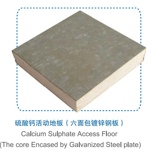 Calcium sulphate raised access floor panel make the environment friendly plant’s fibre as the reinforcement material, and then solidify the Calcium sulphate crystal, and after the pulse pressing process done. It has become the newest one of raised access floor, because the good furthers in environment friendly, fire proof, high loading capacity and flatness and so on. XIANGLI have researched the Calcium sulphate for many years, the loading capacity of this floor from XIANGLI is better than any other suppliers, and the purity of Calcium sulphate in the panel more than 85% which has reached the international standard.