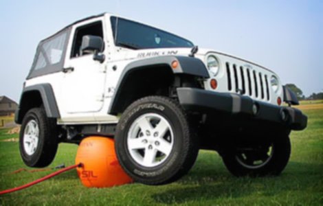 Air jack will safe lift your vehicle up out of a rut or bog in seconds.