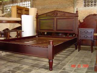 We got 5 new design of classical beds crafted in Indonesian solid mahogany wood. FOB price US$ 375/set (1 set = 1 bed 2 bedside) If you are interested we cans end you details pictures or if you are interested in any other items, kindly