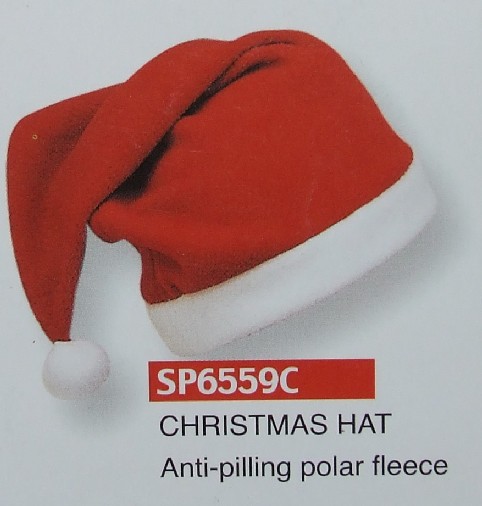 Christmas hat,material:100% polyester,polar fleece with anti-pilling , client's logo can be made as embroidery, more colors are available