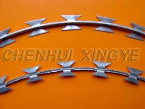 We can produce razor type barbed wire in straight lines of various blade types. Special specifications for straight type razor wire are available on request. Standard materials for razor type barbed wire are either galvanized or stainless steel