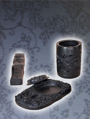 The balck-pottery inherits four chananteristics from traditional teehology which are balck , thin , bright and knobby . The whole producing process is done and engraved by hard . It not only keeps the black-pottery's honorable and inherent qualities such as black as lacker , bright as mirror and sound as chime store , but also contains health and energy of modernity and fashion . This pottery combines ancient and modern fiqures together . and takes a leading place in donmestic area for its products bacause of the partiuclar manner . It really deserves to be viewed , admired , or even collected