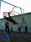 You don't need any power to use it. Our astro training is made so it uses the earth's gravitation for the spinning! This is compeletly safe product. The player is secured with harness, ropes, special boots and special harness for hands.